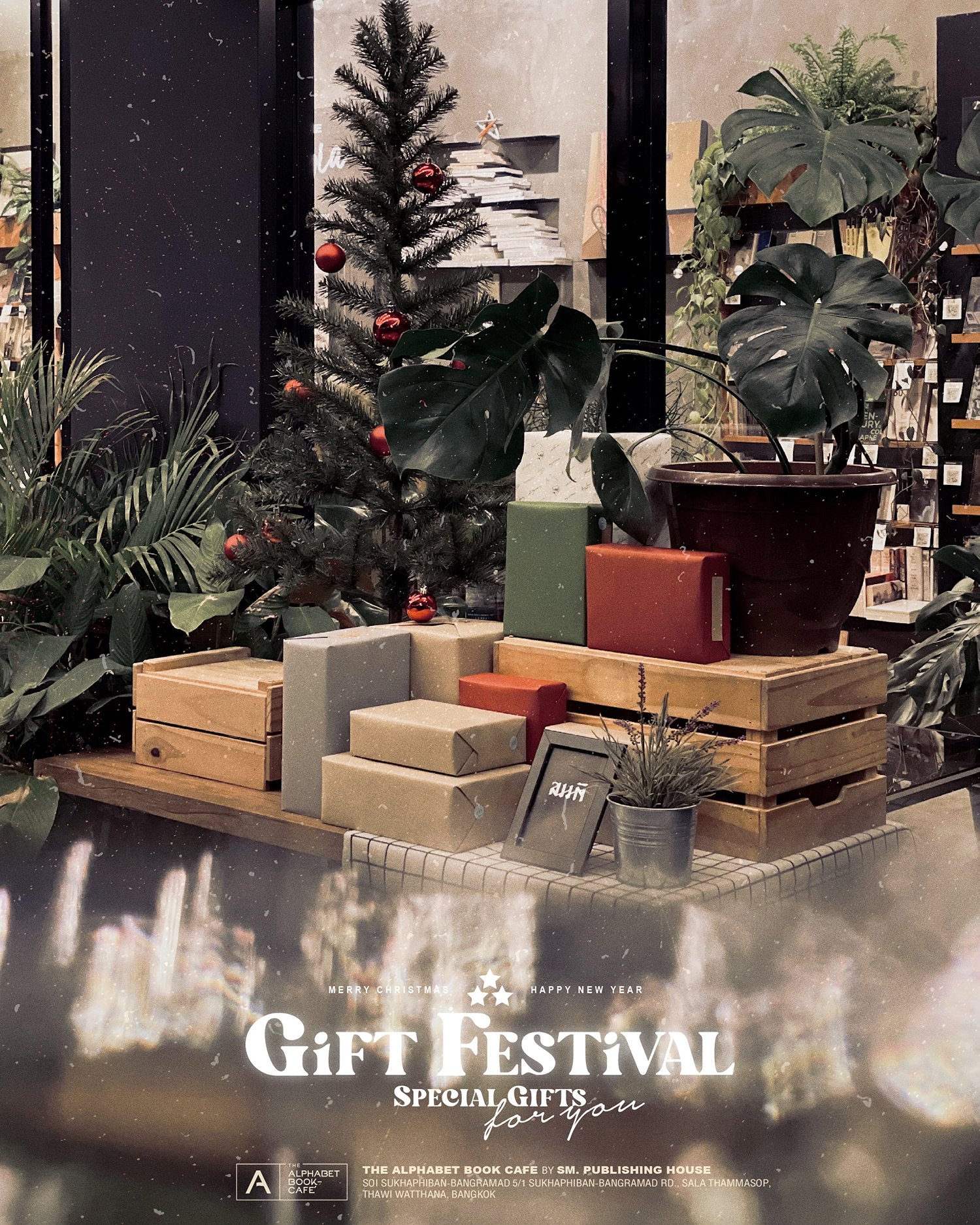 เพราะนอกจากหน้าร้านจะประดับประดาด้วยต้นคริสมาสต์หนังสือ ดวงไฟ เคล้าไปกับเมนูเครื่องดื่มหลากหลาย เบเกอรี่หลากรส หนังสือ ต้นไม้ ภาพพิมพ์โบราณ งานศิลปะ และลมเย็นๆ ของฤดูหนาวแล้ว