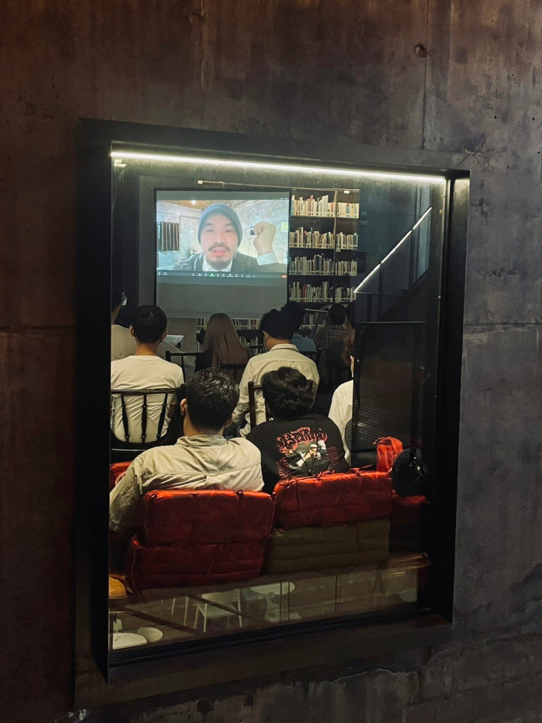 งานเสวนาเริ่มขึ้น บัณฑิตส่งต่อให้ เอกสิทธิ์ เทียมธรรม บรรณาธิการจากสำนักพิมพ์สมมติ เปิดประเด็นเล่าถึงหนังสือ การเมืองทัศนา ในมุมมองของสำนักพิมพ์