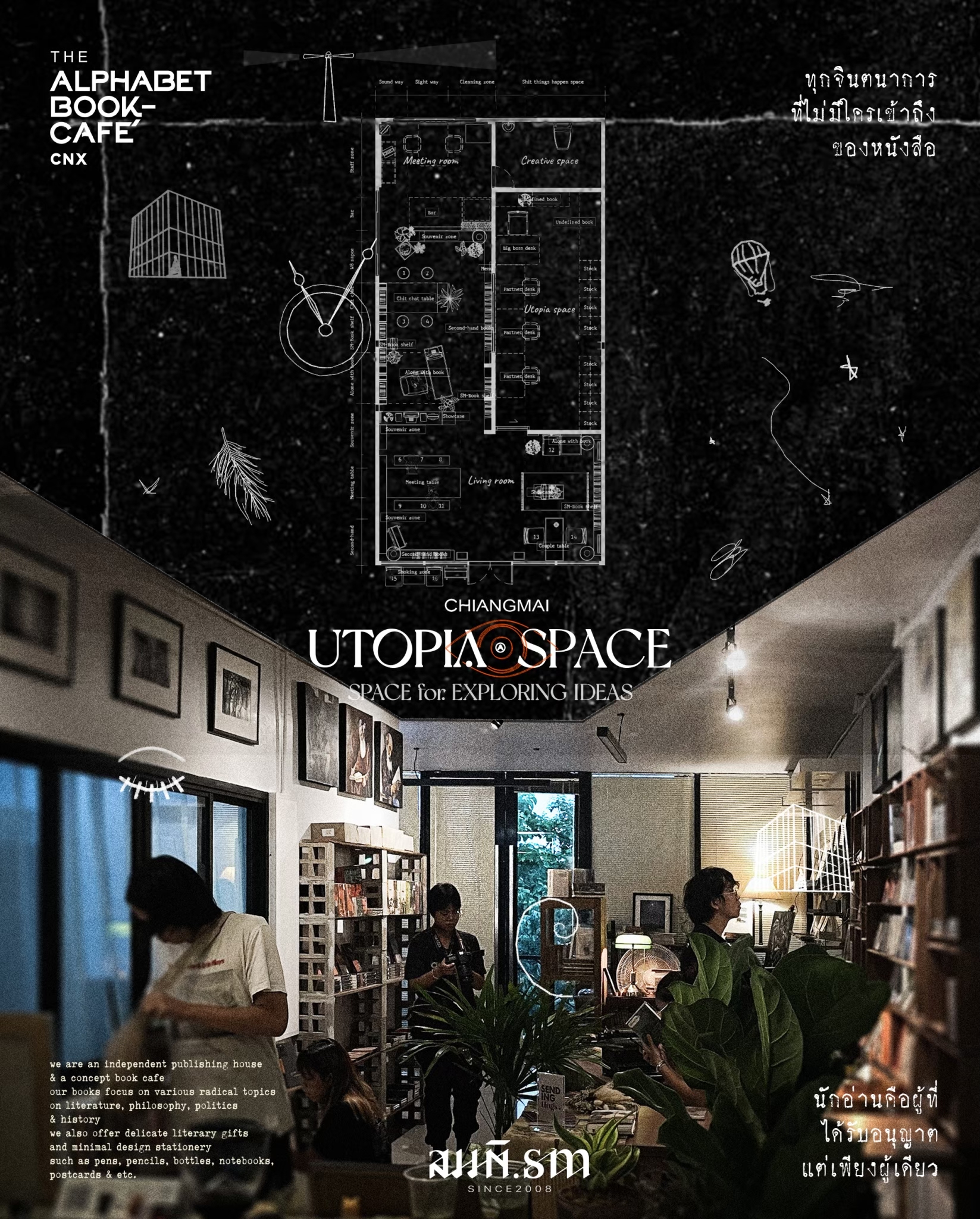 ด้วยความคาดหวังที่วางอยู่นอกขอบข่ายของการทำธรุกิจ ทำให้ The Alphabet BookCafé ก่อกำเนิดขึ้น ณ จังหวัดเชียงใหม่ ในนามของพื้นที่ที่ปรารถนาให้หนังสือและผู้อ่านได้พบเจอกัน ซึ่งรวมถึงการเป็นพื้นที่ที่ผู้รักการอ่านได้โคจรมาพูดคุยแลกเปลี่ยนความคิด หรือกระทั่งก่อการอื่นๆ
