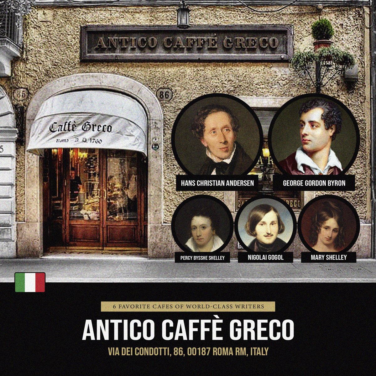 คาเฟ่สัญชาติอิตาเลียนนี้เป็นคาเฟ่ที่เก่าแก่ที่สุดในกรุงโรม มันทำหน้าที่ต้อนรับบรรดานักเขียนและกวีมากฝีมือหลายคนมาตั้งแต่ ค.ศ.1760 ตั้งแต่ราชาแห่งโลกนิทานอย่าง ฮันส์ คริสเตียน แอนเดอร์เซน (Hans Christian Andersen) กวีชื่อดัง จอร์จ กอร์ดอน ไบรอน บารอนไบรอนที่ 6 (George Gordon Byron)