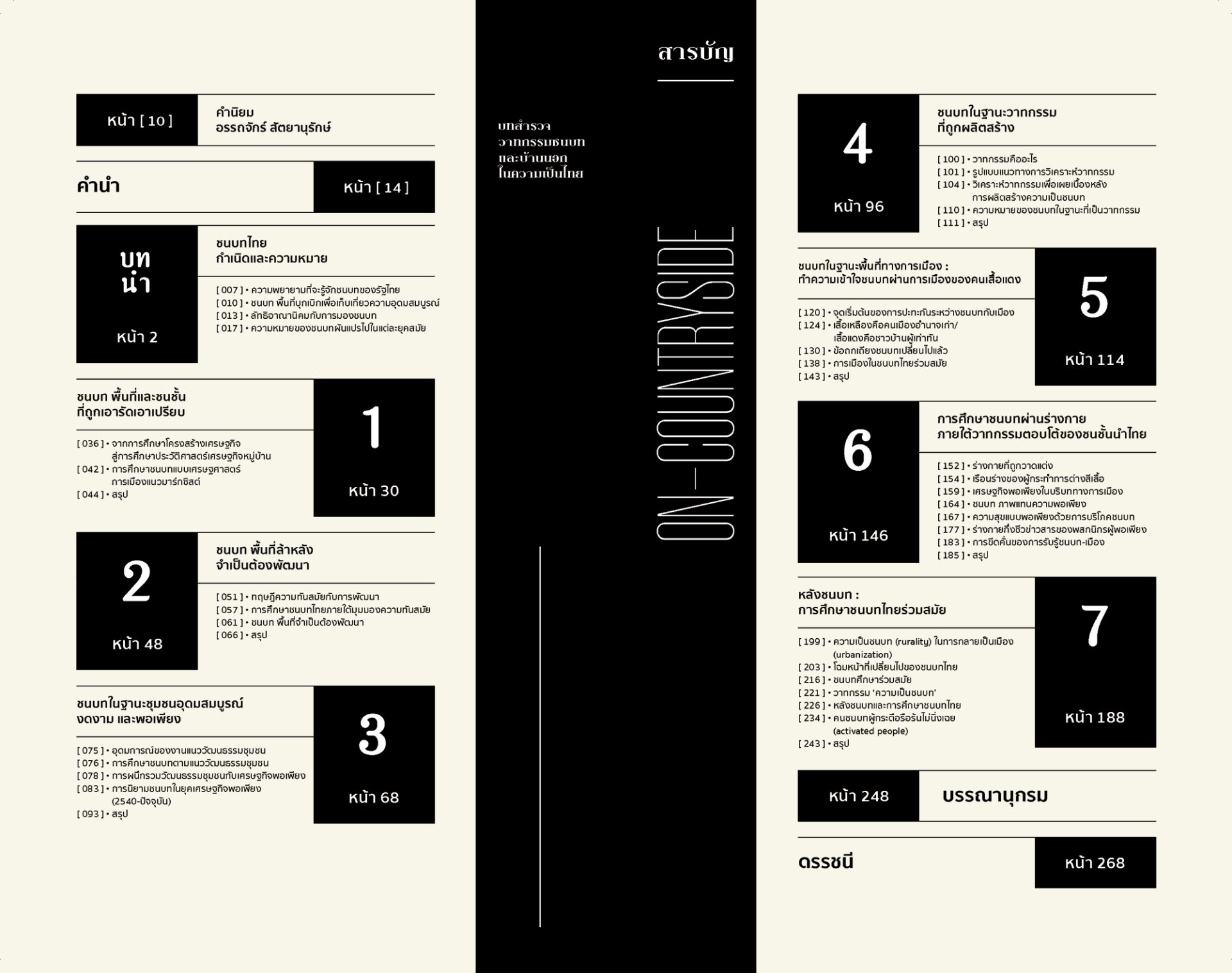 หนังสือเล่มนี้ต้องการให้ผู้อ่านได้มองเห็นความเปลี่ยนแปลงของการรับรู้และให้ความหมายแก่ ชนบทและความเป็นชนบท ซึ่งเปลี่ยนแปลงตลอดเวลาที่ผ่านมา พร้อมกับชี้ให้เห็นว่าการรับรู้และให้ความหมายแก่ชนบทในช่วงเวลาหนึ่งๆ ไม่ใช่เพียงความรู้ธรรมดา หากแต่เป็น ‘ชุดความรู้’ ที่ผูกพันอยู่กับการปฏิบัติการต่อชนบทของรัฐและผู้คนในสังคมช่วงเวลานั้นๆ