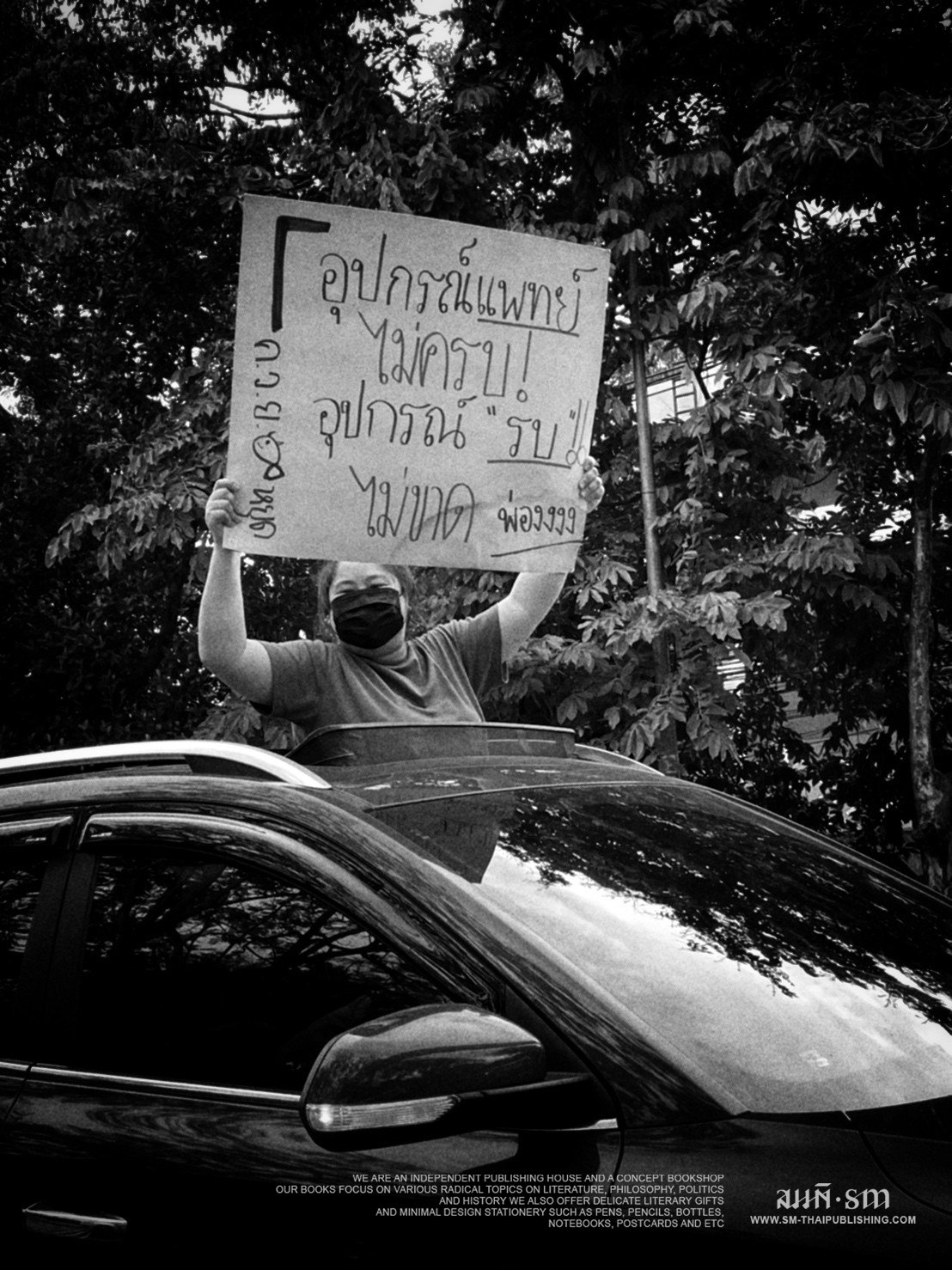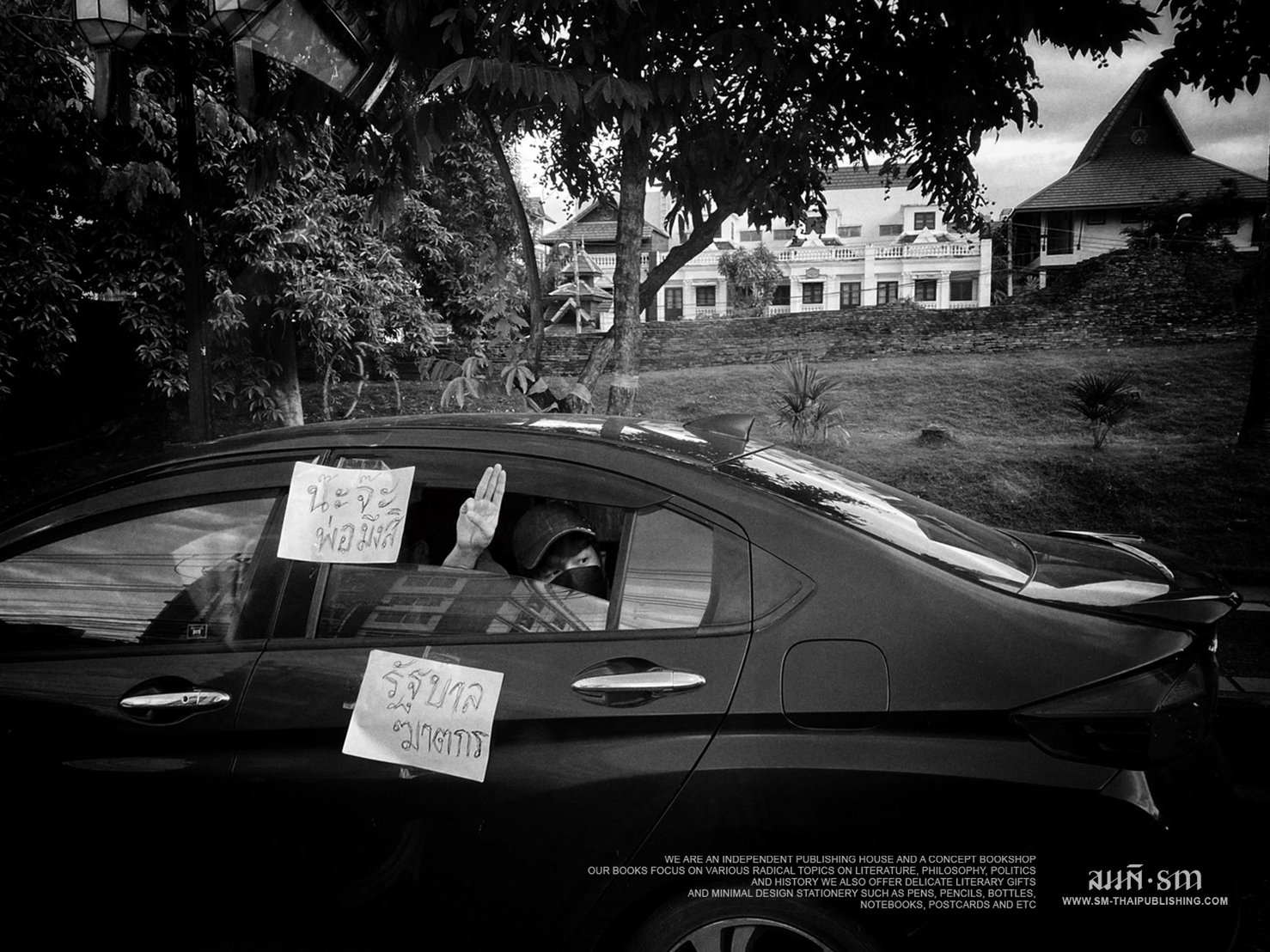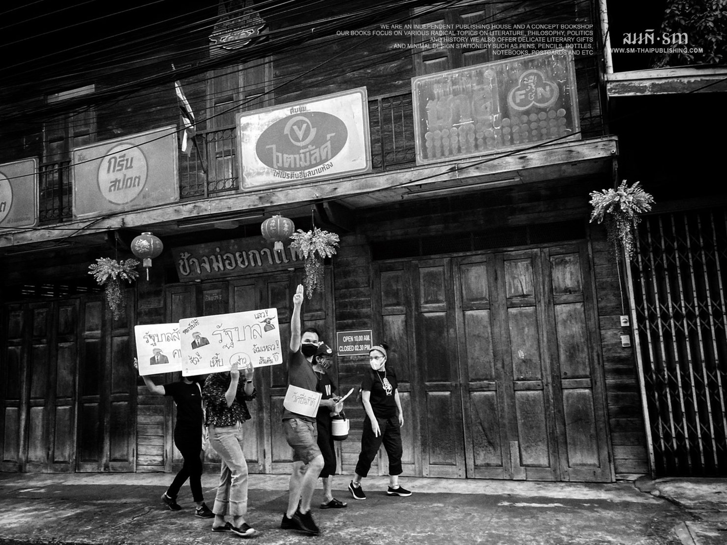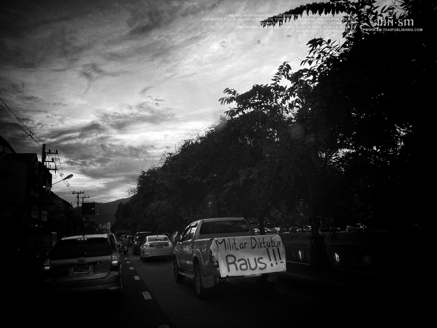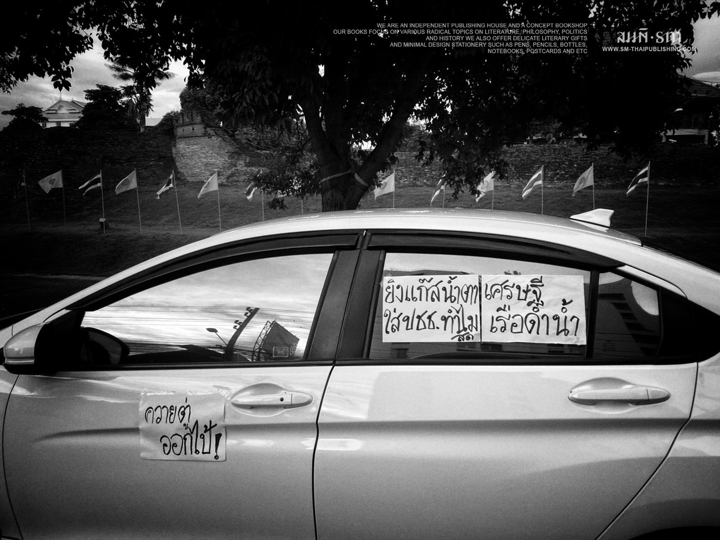 เดินเท้า จักรยาน รถยนต์ มอเตอร์ไซค์ พร้อมป้ายข้อความและเสียงขับไล่ของประชาชน