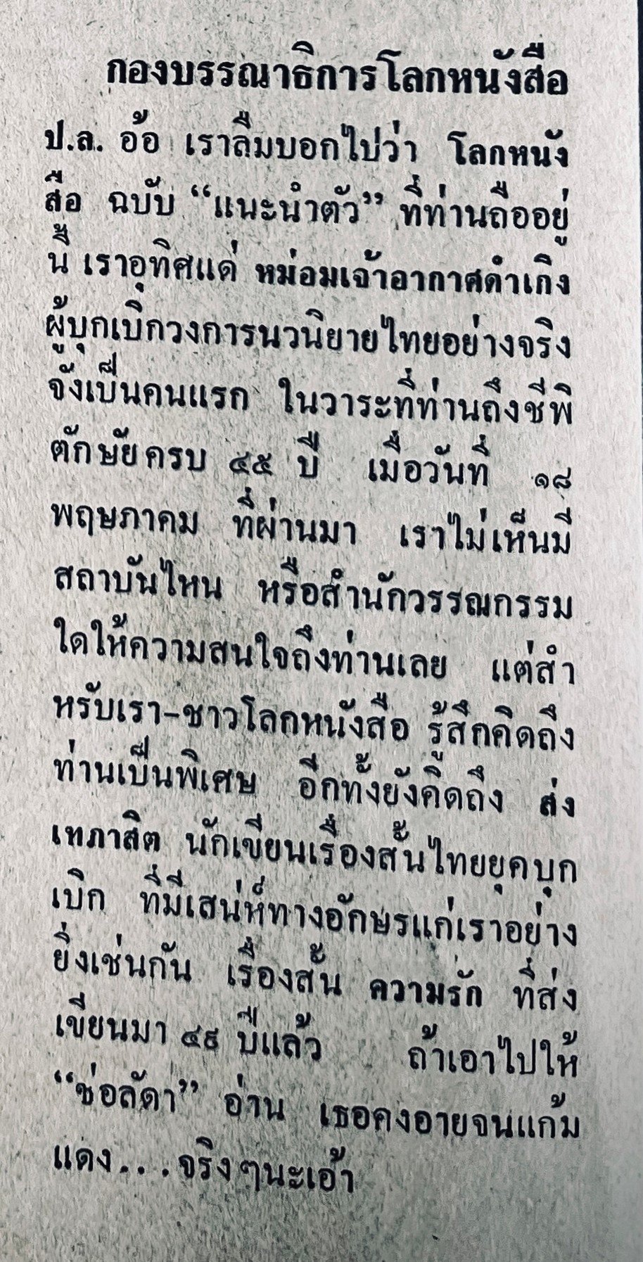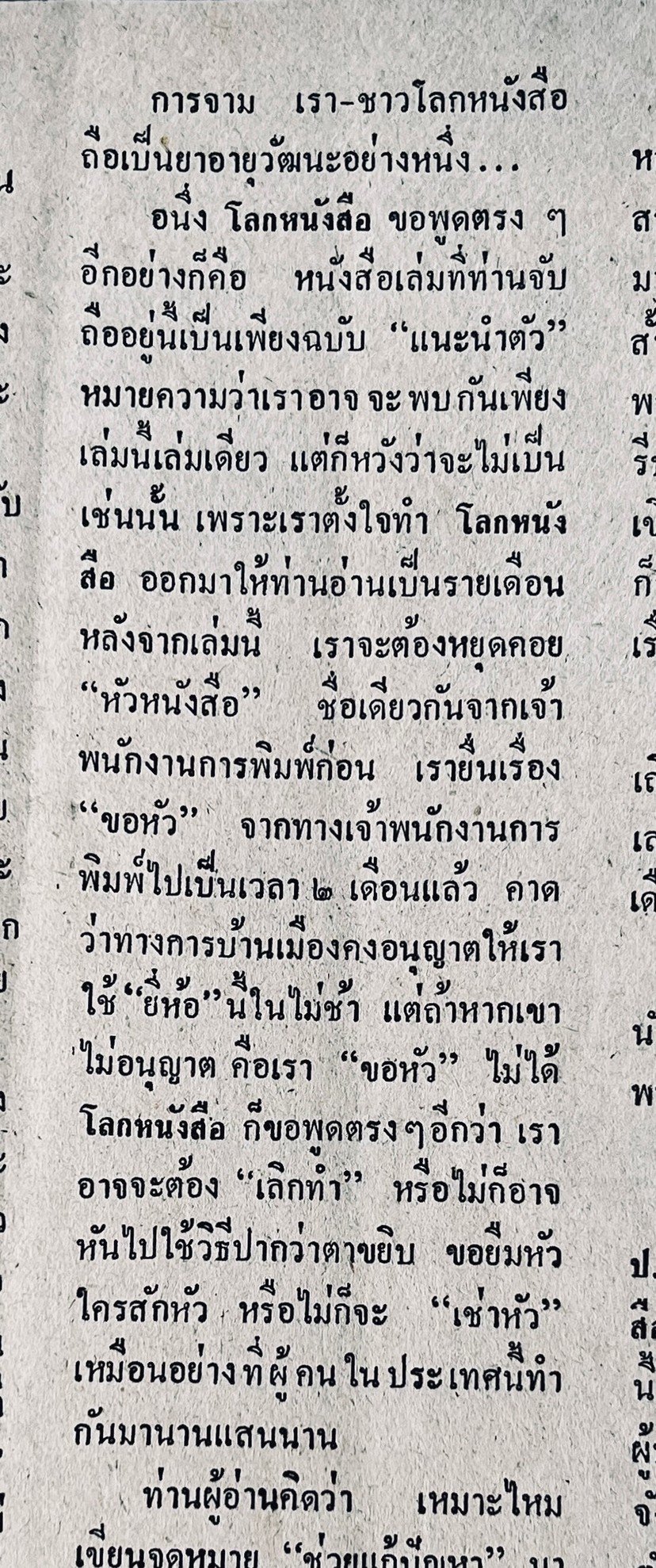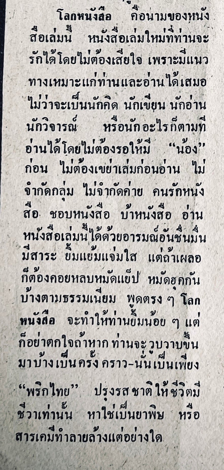จาก โลกหนังสือฉบับแนะนำตัว ‘จากห้องสี่เหลี่ยม’ กันยายน 2520 บรรณาธิการโดย สุชาติ สวัสดิ์ศรี