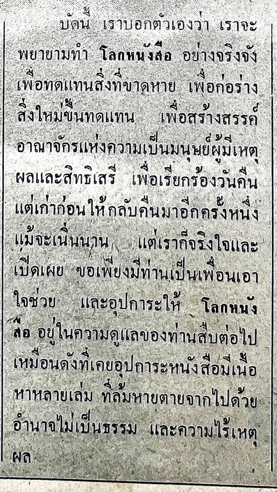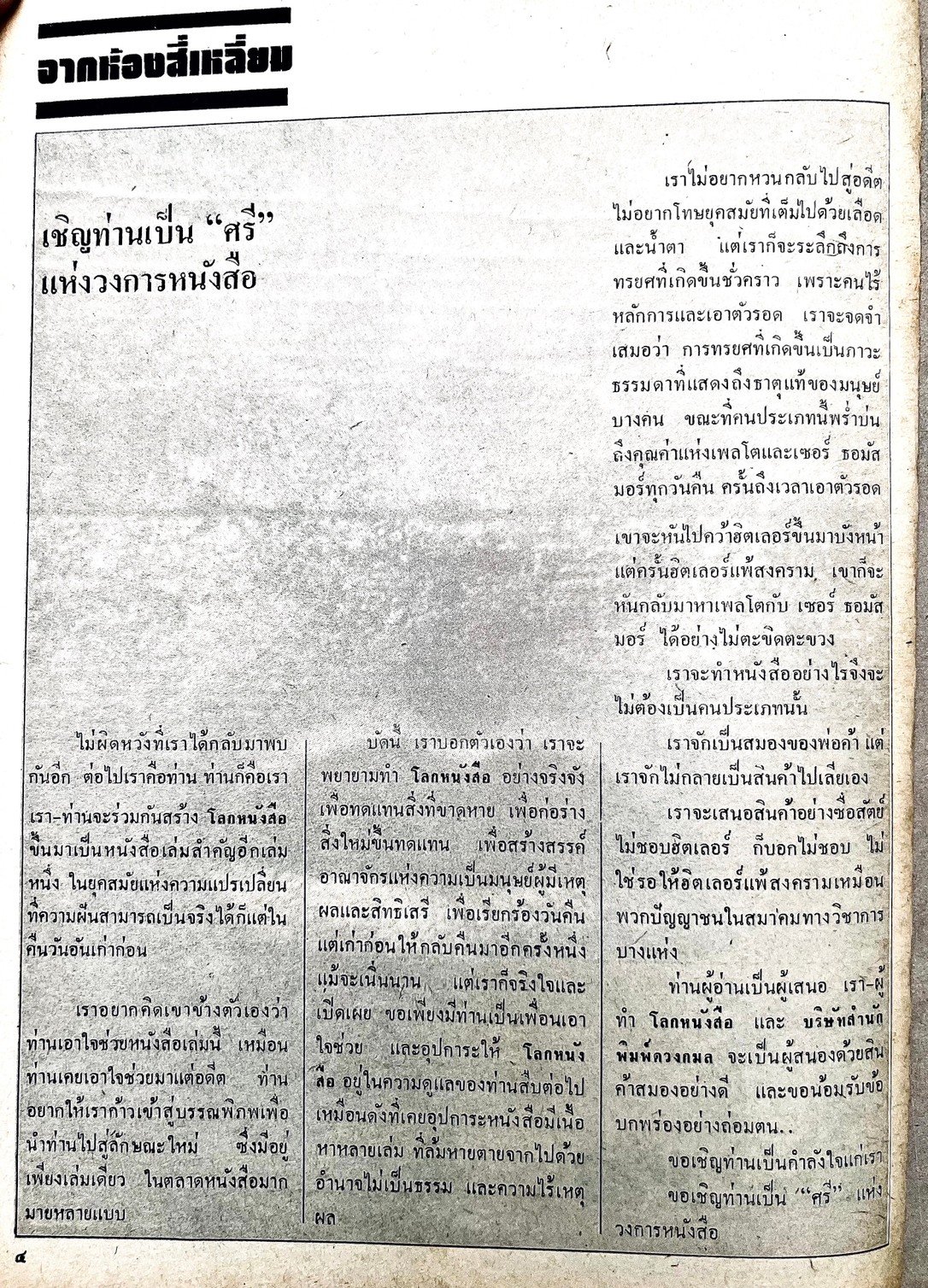 จาก โลกหนังสือ ‘จากห้องสี่เหลี่ยม’ ปีที่ 1 ฉบับที่ 2 พฤศจิกายน 2520 บรรณาธิการโดย สุชาติ สวัสดิ์ศรี