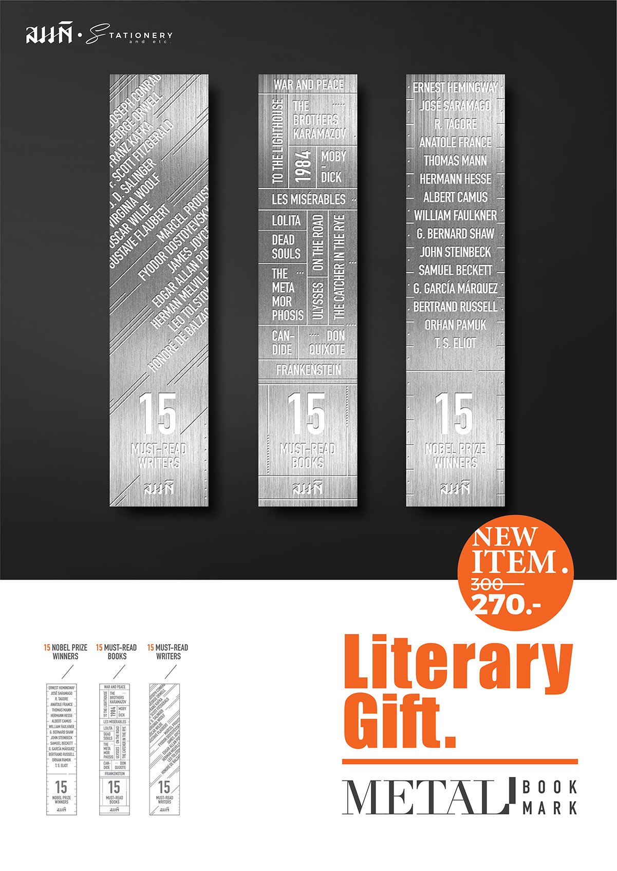 สามารถคลิกสั่งซื้อได้เลย Stainless Steel Bookmark | ที่คั่นสลักชื่อนักเขียนโลกและหนังสือตำนาน