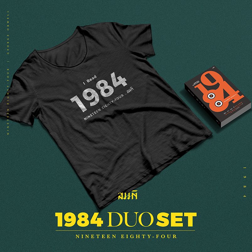 สำหรับผู้อ่านที่สนใจวรรณกรรมการเมืองคลาสสิคเล่มนี้ ตอนนี้สนพ.สมมติจัดโปรโมชั่นสุดคุ้ม PRE-ORDER SPECIAL DUO 1 9 8 4 SET ซื้อหนังสือ 1984 พร้อมเสื้อ I Read 1984 ในราคาพิเศษเพียง 559 บาท จัดส่งฟรี!!